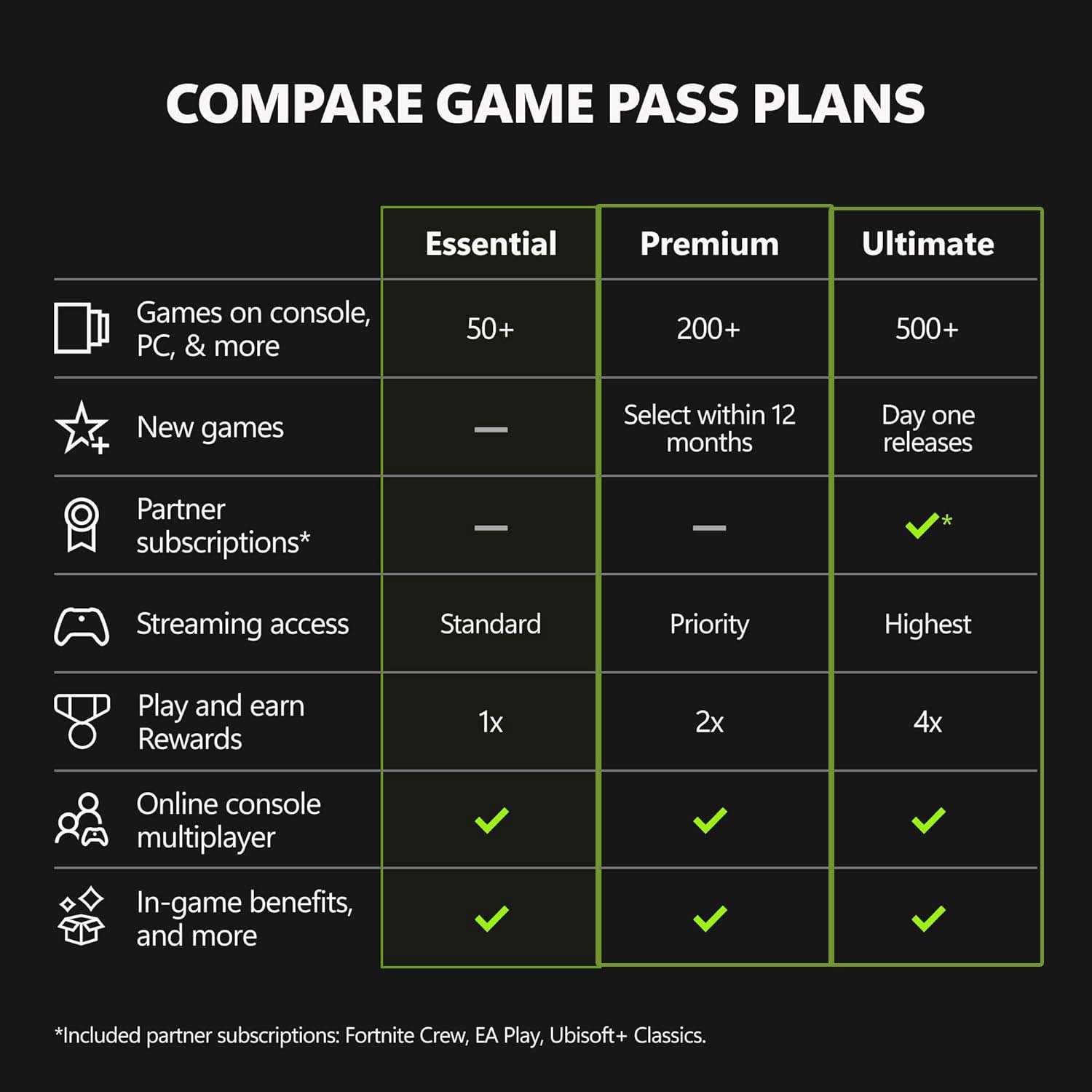 - GAME PASS ESSENTIAL: Enjoy a curated library of 50+ games and essential Xbox features in one subscription.